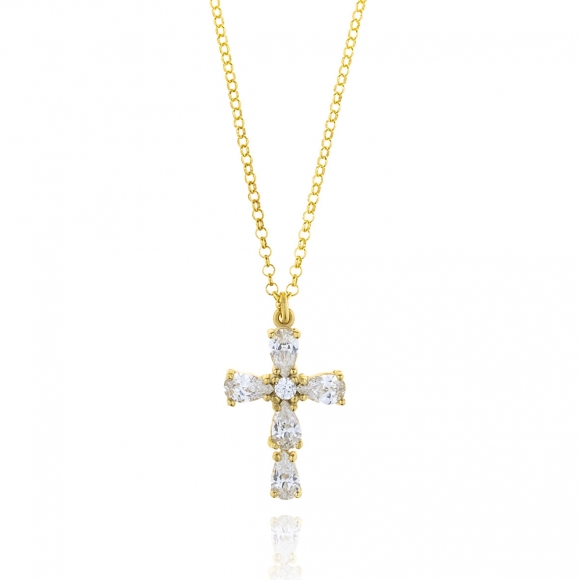 Necklace silver 925 yellow gold plated with zirconia