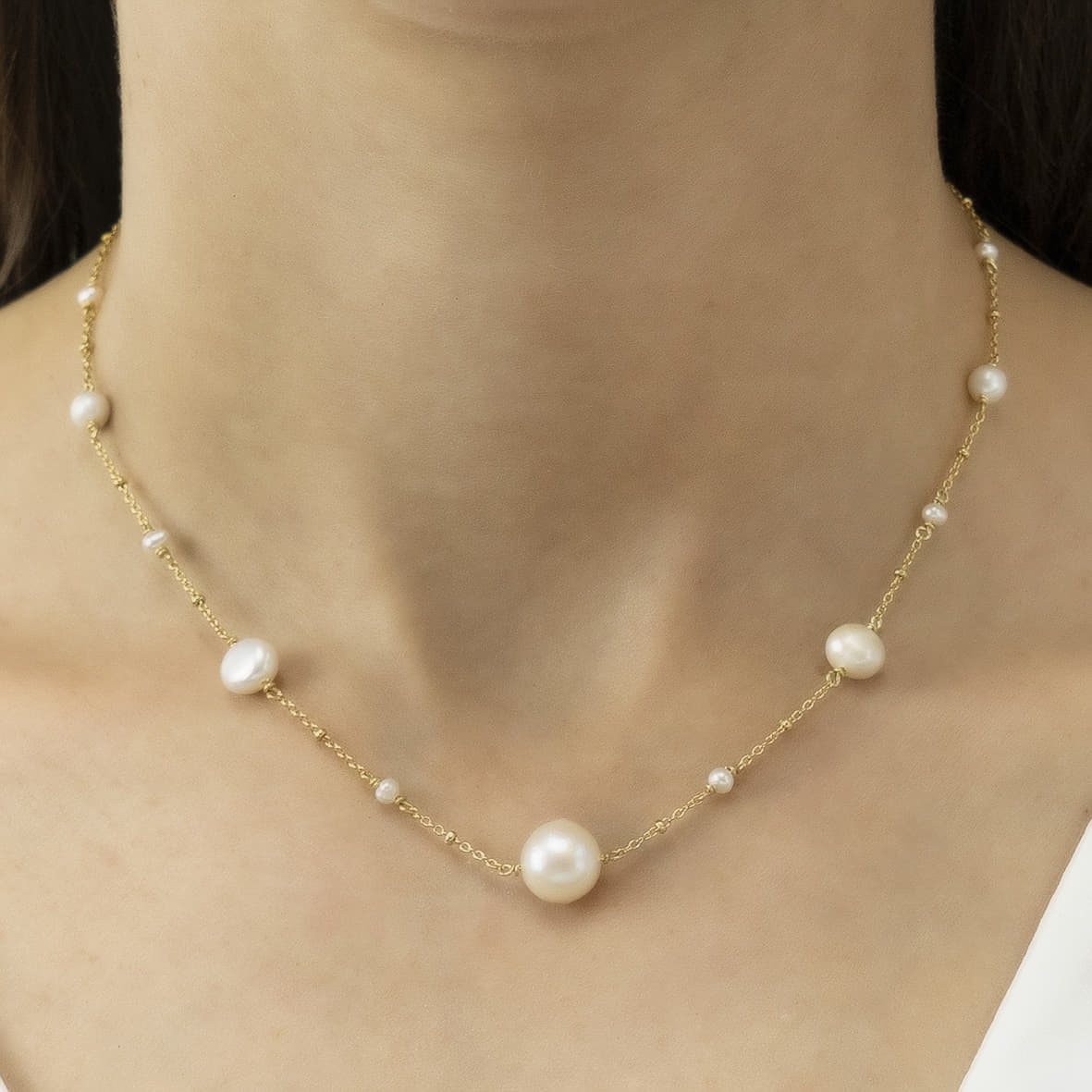 Necklase silver 925 yellow gold plated with fresh water pearl