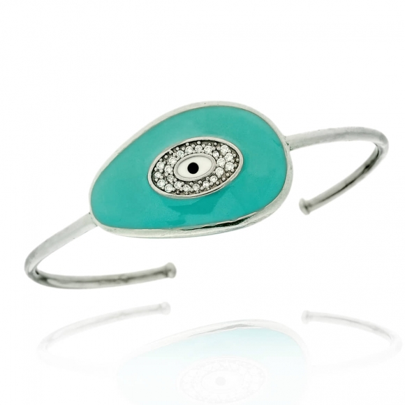 • Bracelet silver 925 rhodium plated with enamel evil eye and zirconia