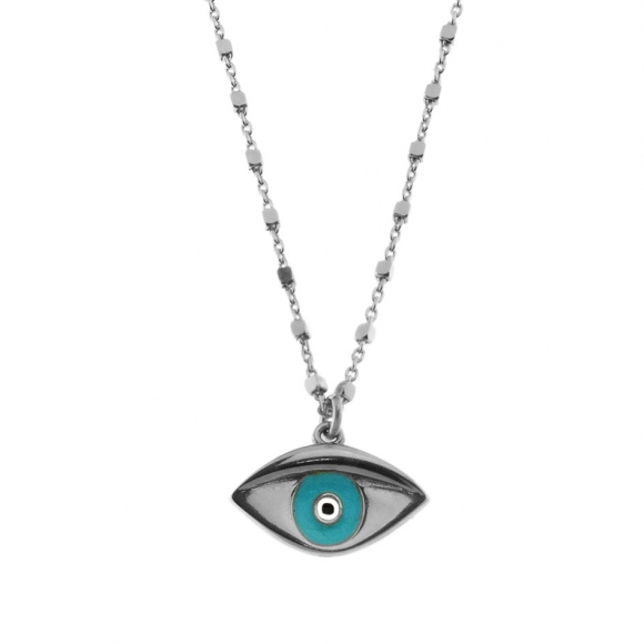 Necklace silver 925 rhodium plated with enamel evil eye