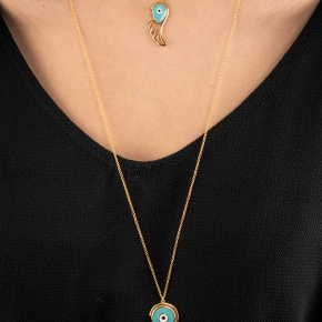 Necklace silver 925 gold plated & with enamel evil eye